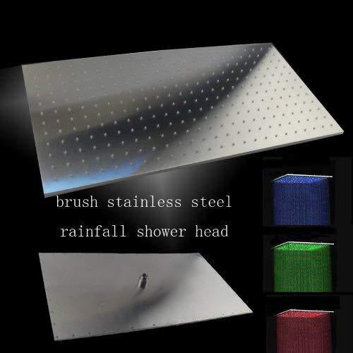 Cascada 8"x16" Stainless Steel Rainfall LED Shower Head - Brushed Stainless Steel is backordered and will ship as soon as it is back in stock.