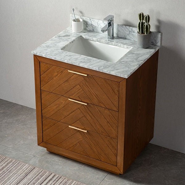 Cascada 30" Oak Bathroom Vanity with Carrara Marble Top